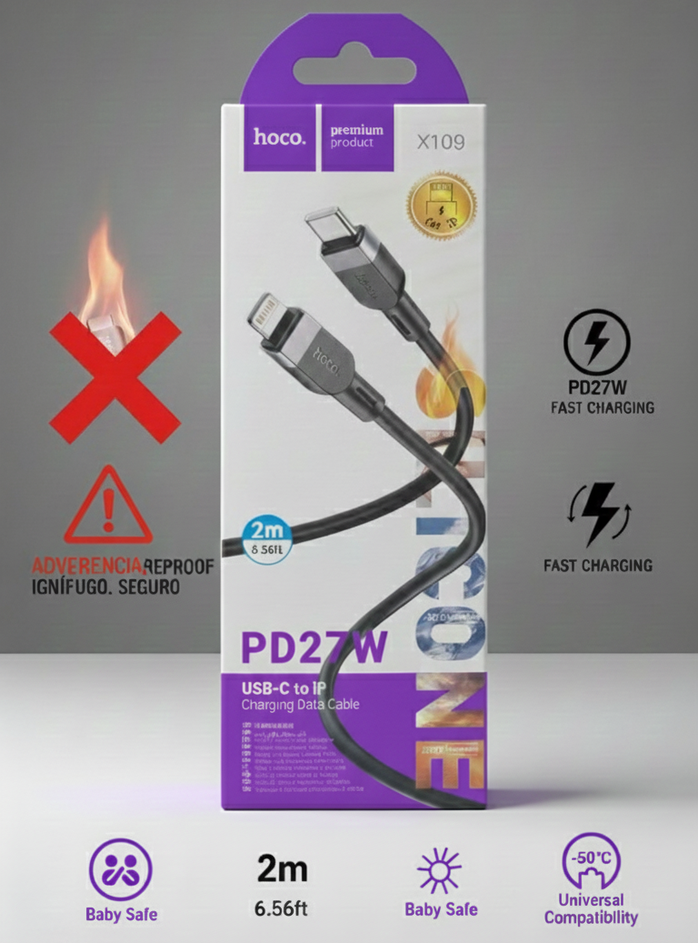 Carga tus dispositivos con confianza total. El cable HOCO original está diseñado para quienes buscan rendimiento superior, durabilidad y máxima seguridad en cada carga.