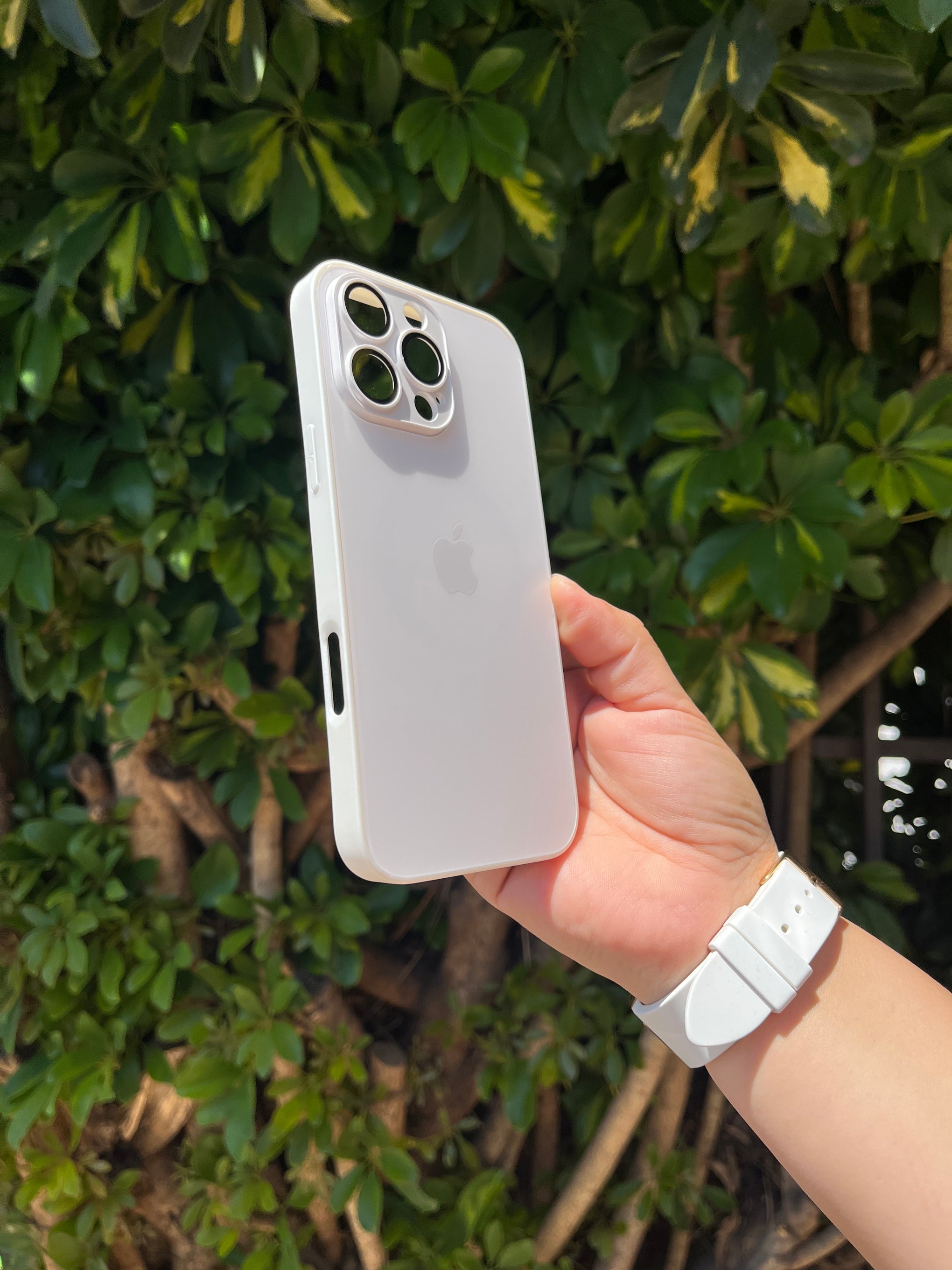 Glass Case Blanca iPhone 15ProMáx/16Pro/16ProMáx